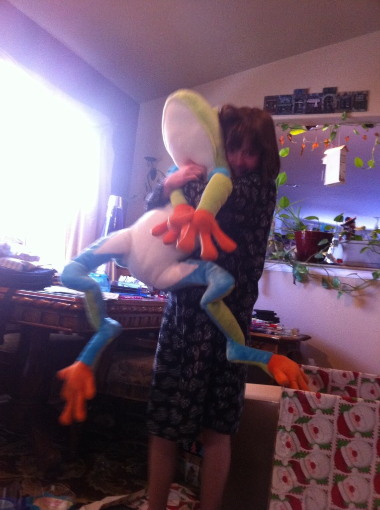 For Christmas one year, when I was 8 or 9, I was gifted a giant red-eyed tree frog plushie by my dad. The thing was huge, almost as big as me at the time, and it was my favorite plush from then on. It had so much detail and was so colorful.