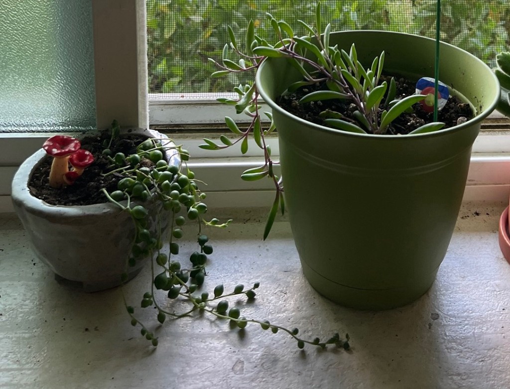 First off, I separated Janis Joplin and Alejandro. I put a cool Colorado guitar pick in Alejandro’s pot.. he was getting big and I think he needed the pot to himself. Janis is now in a ceramic pot I made and glazed myself!
