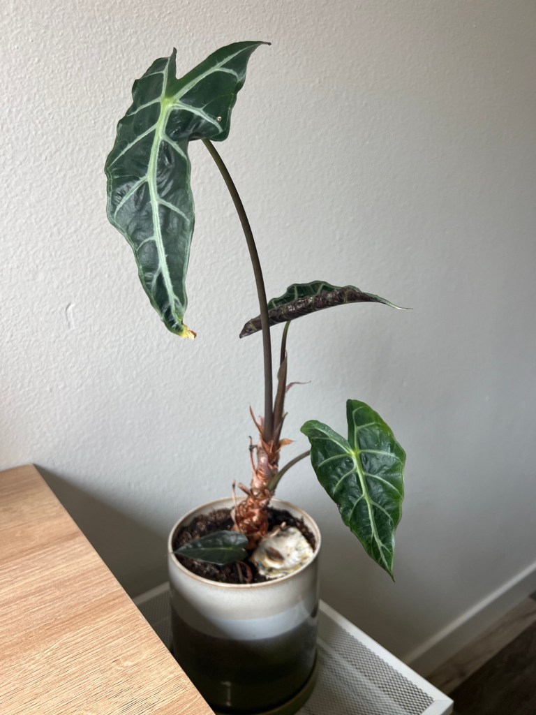 Next to my desk, I have my alocasia whom I love. It gave me 2 new leaves this past week.