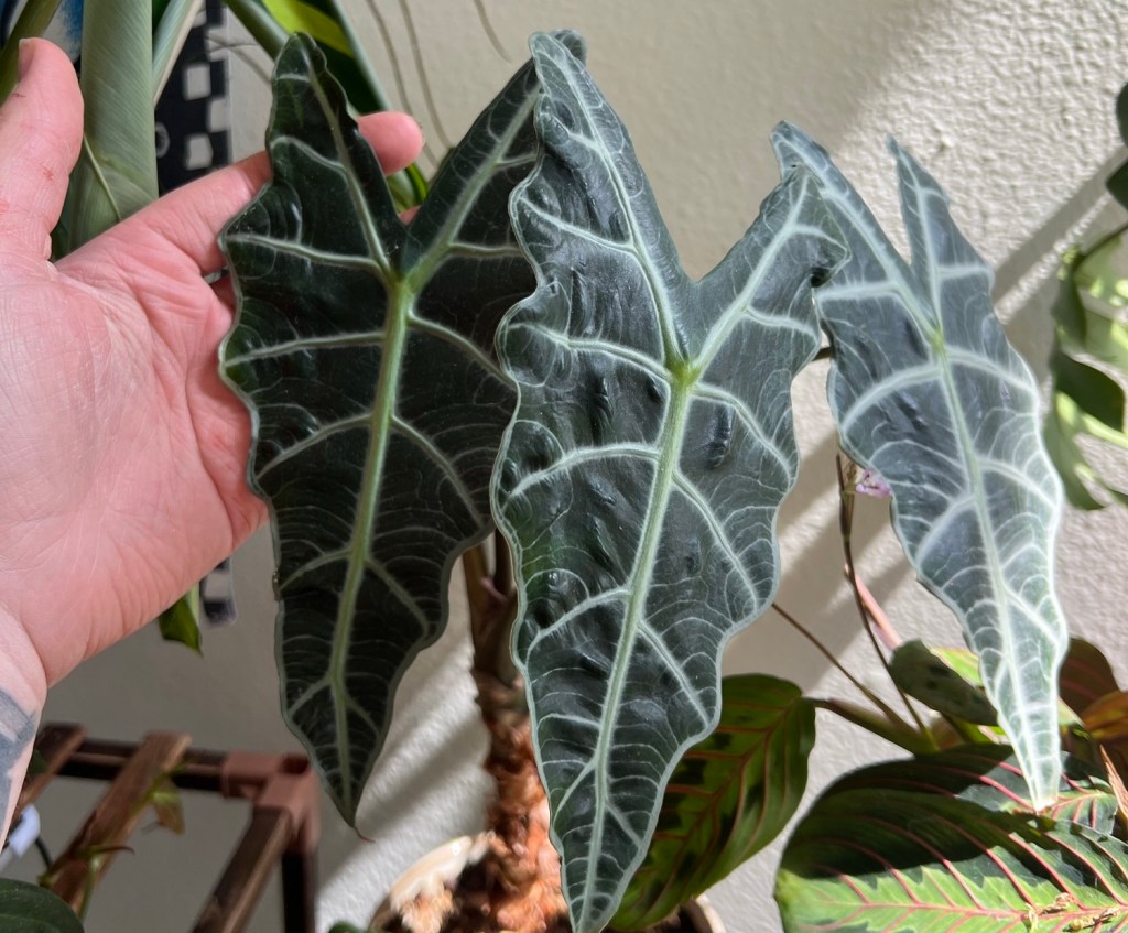 My alocasia African mask is great, and is currently working on giving me a new leaf!