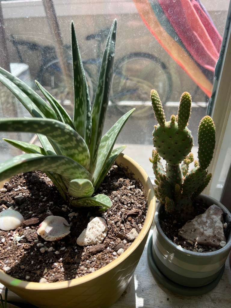 My aloe is good, and cactus (named Spicy McPickle) is growing new pieces. He’s growing quickly!