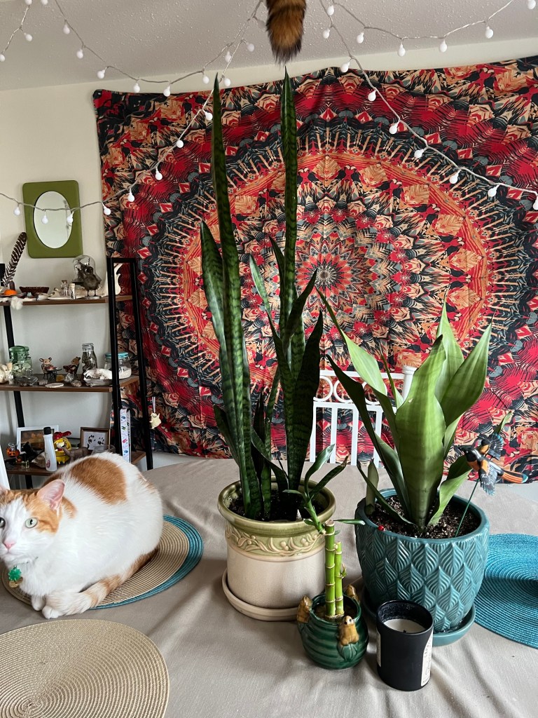 Finally for the downstairs plants, my snakes. The one on the right has a baby plant in the pot if you can see!